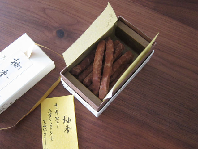 はい。こちらが今回買います柚子とチョコレートのお菓子、柚香(ゆうか)です。